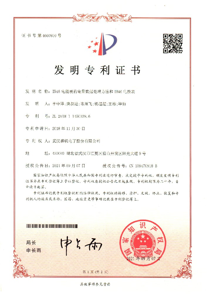 發(fā)明專利證書